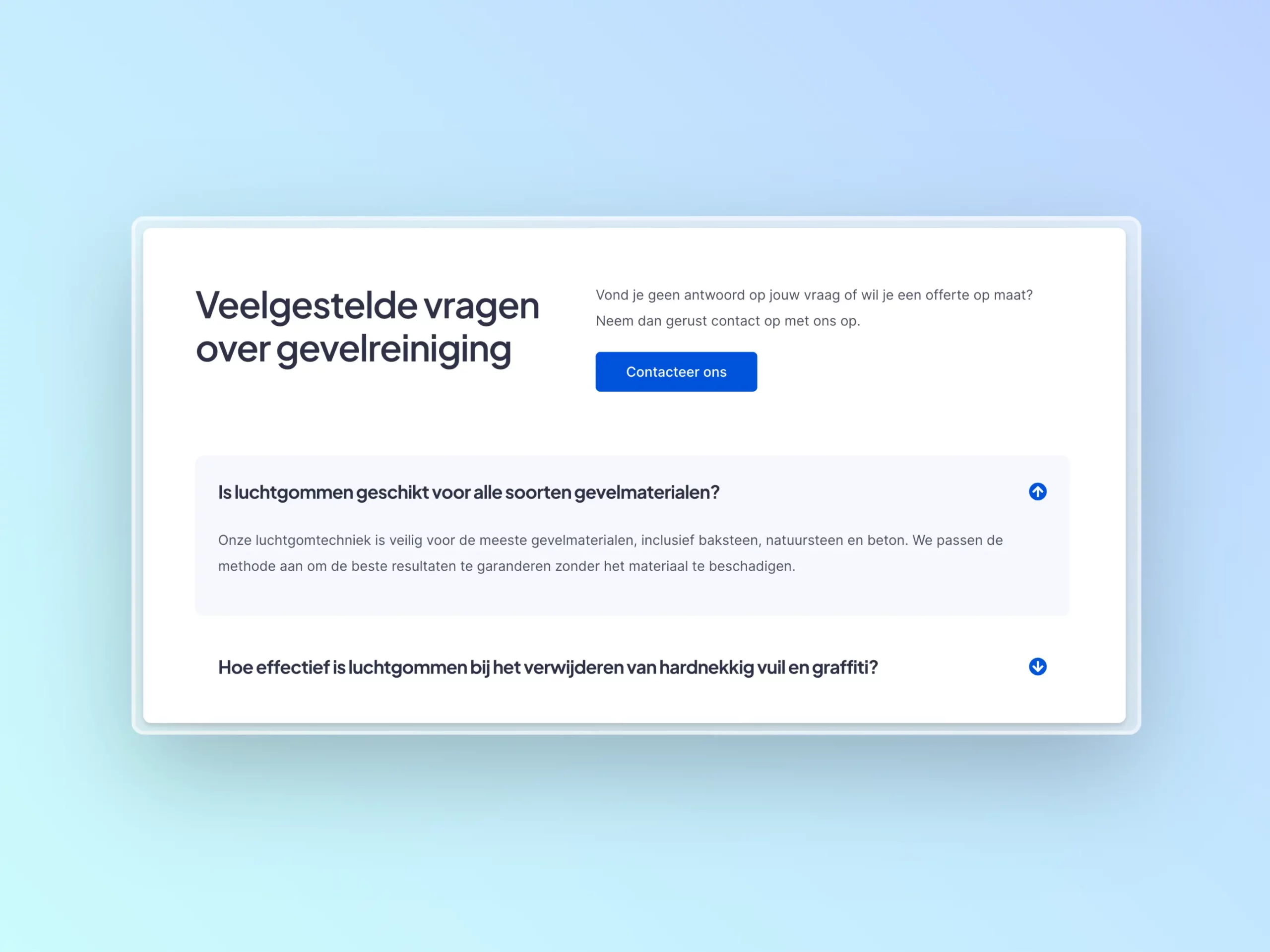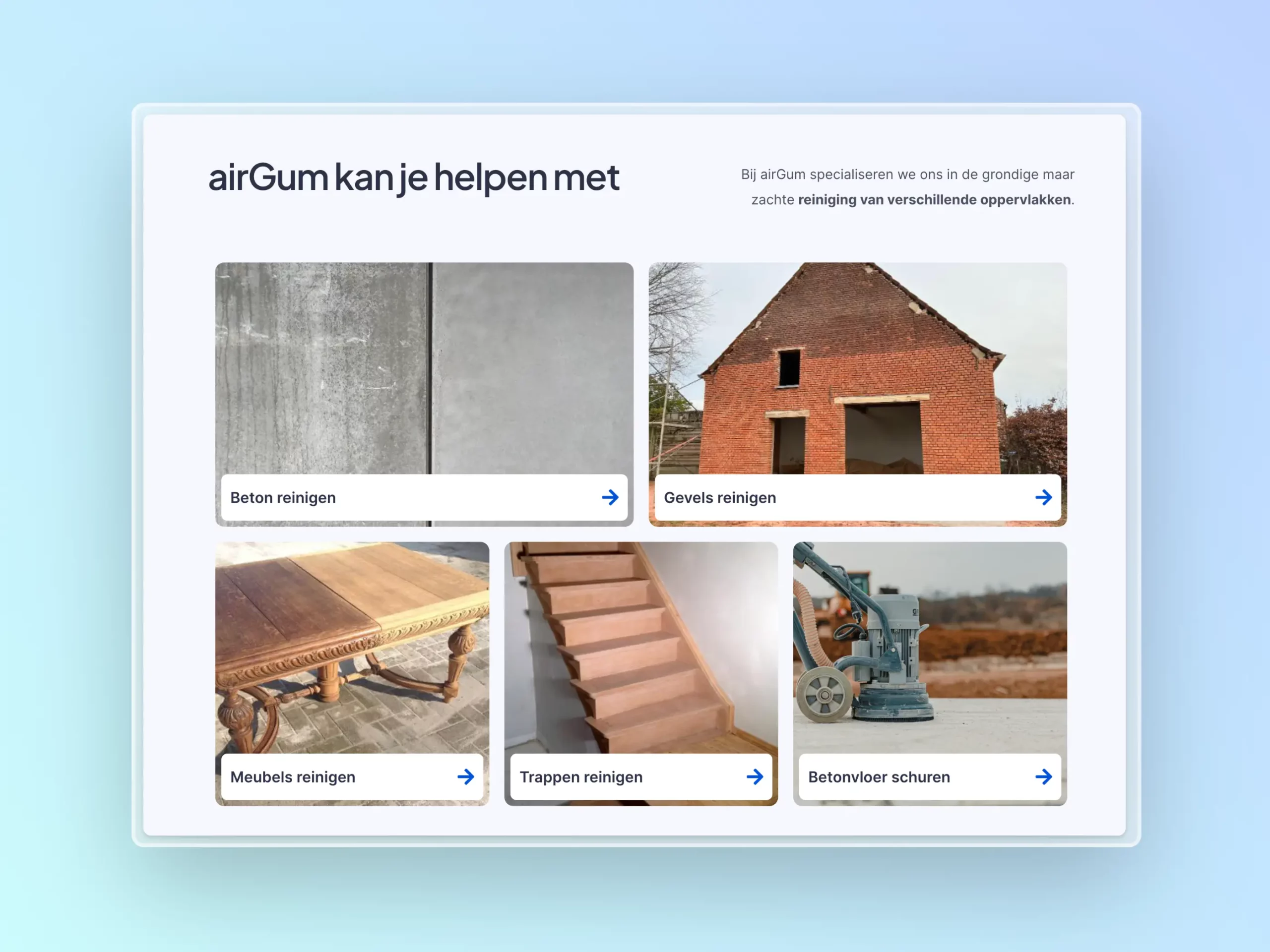 Niet veel mensen weten dat je veel verschillende dingen kan luchtgommen. Daarom bouwden we afzonderlijke pagina’s voor elke dienst. Zo kunnen we hier ook gerichte advertenties naar sturen via Google en Meta.
