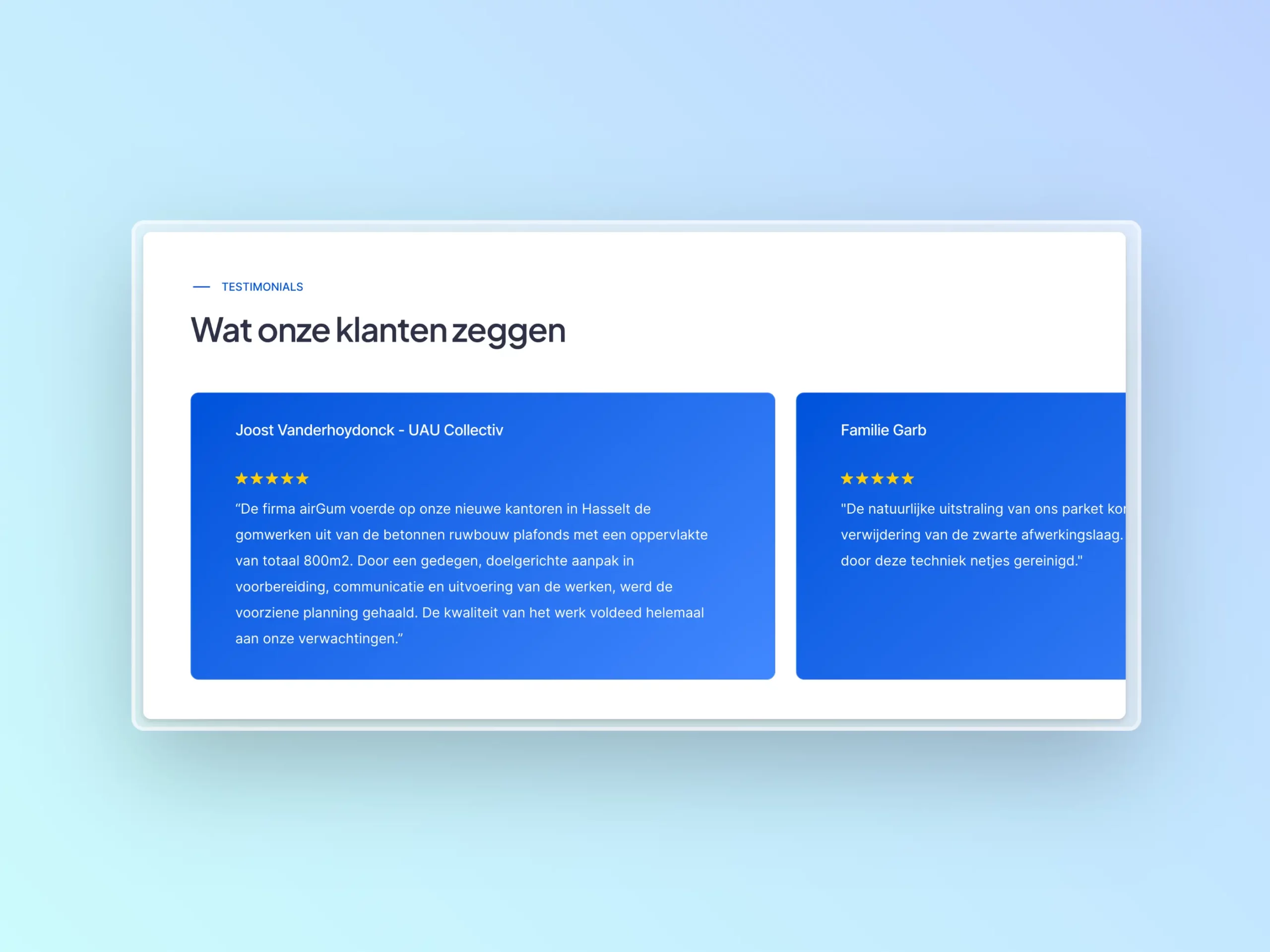Op deze manier kunnen we alle voorgaande projecten van airGum Cleaning laten zien. Bezoekers kunnen filteren op wat hun het meeste interesseert, en zo kunnen we dat ook dynamisch inladen op alle pagina’s.
