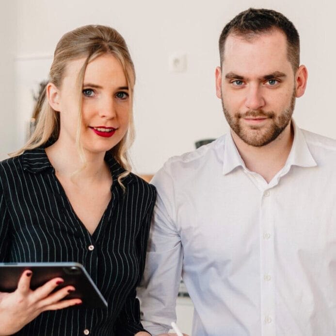 Leen Rooms & Arno Verspreet vormen samen de perfecte BLENTT-tandem, een interieurbureau dat je begeleidt doorheen het hele proces, van concept tot uitvoering. Leen is het creatieve brein achter BLENTT, terwijl Arno dan weer de technische drijfkracht is binnen deze tandem. Ze worden ondersteund door een team van vakmannen die helpen bij de creatie in het eigen atelier. Zo garandeert het team van BLENTT de allerhoogste kwaliteit!