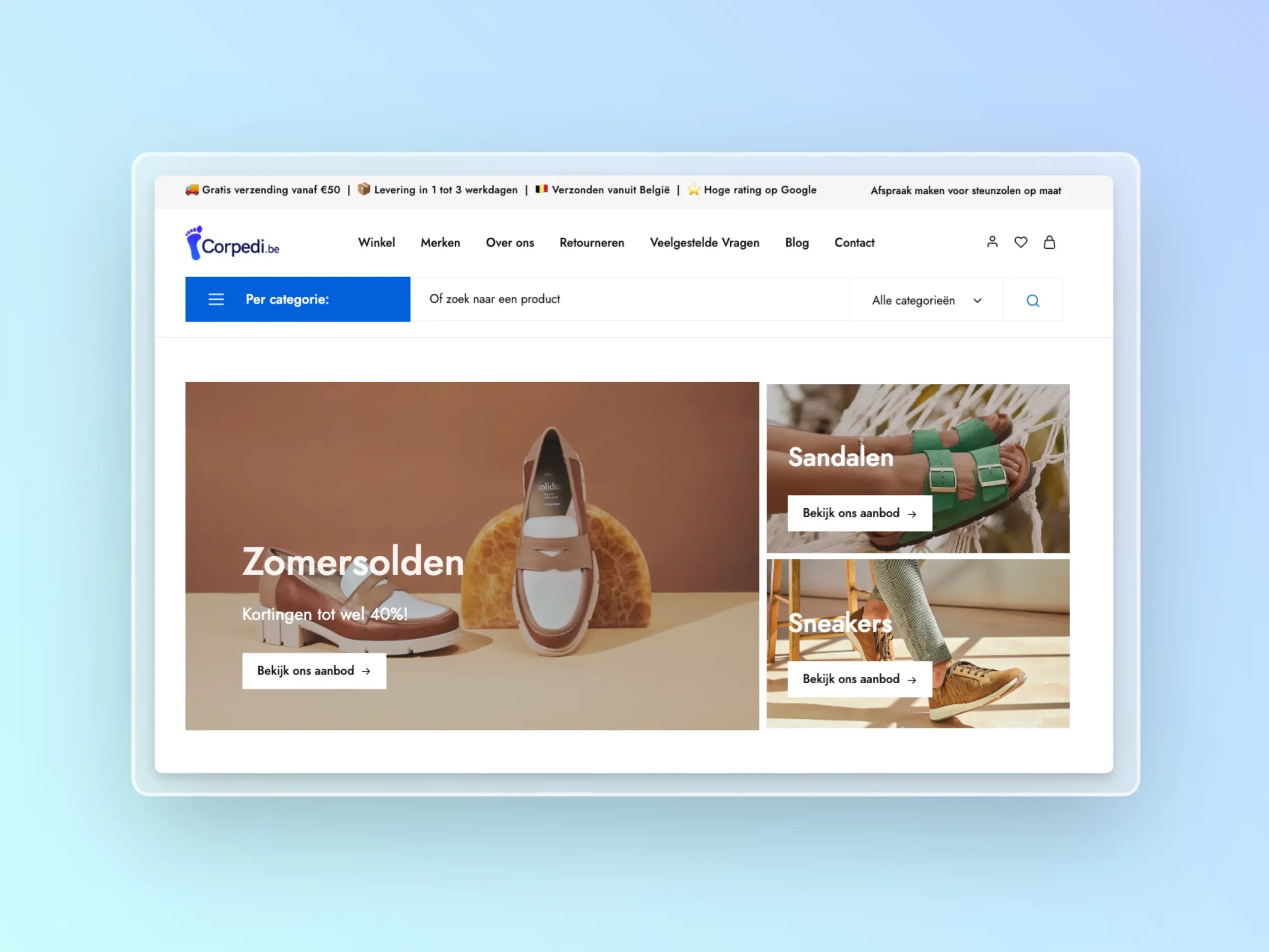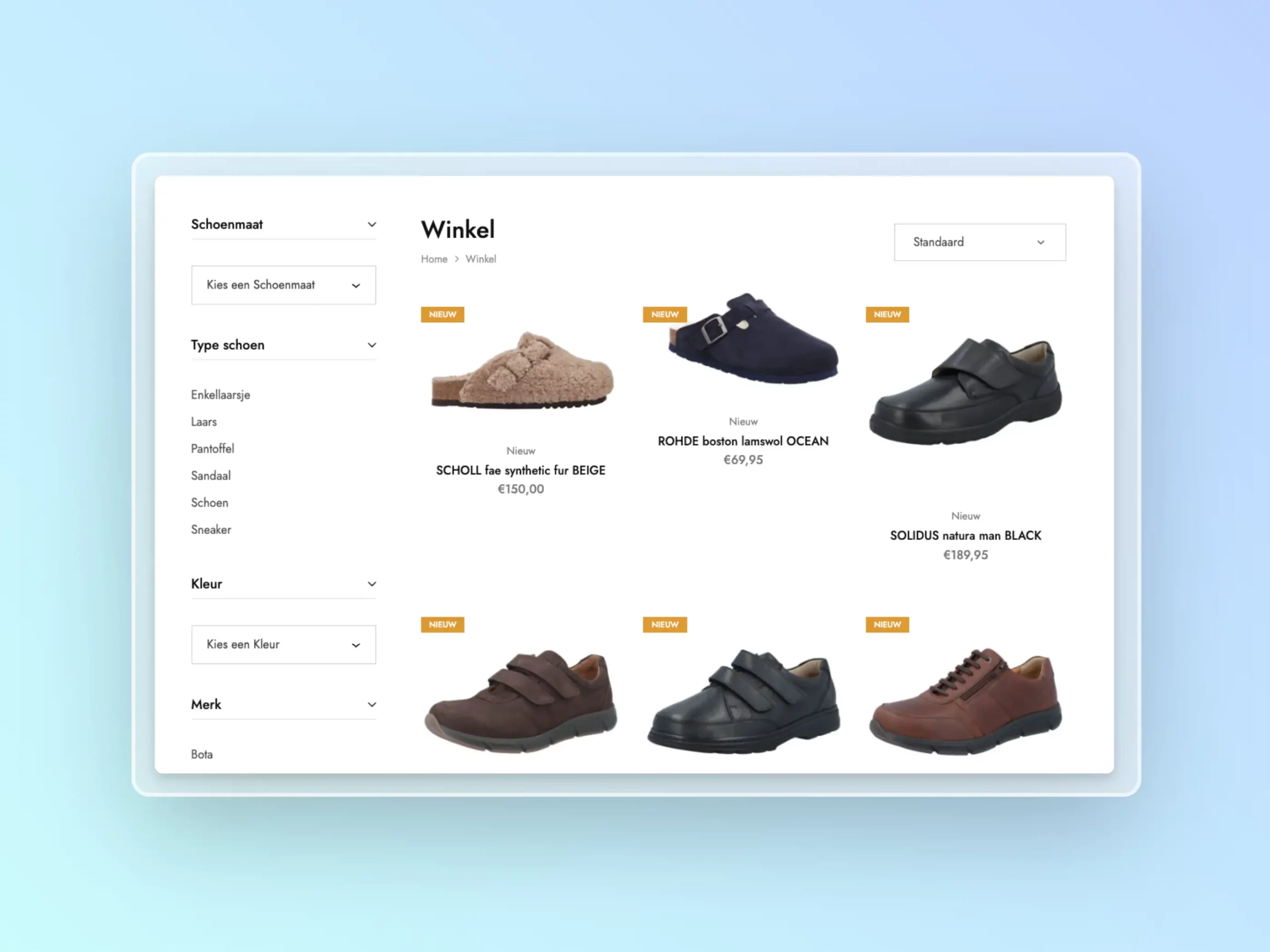 Elke webshop heeft een sterk filtersysteem nodig. Dit bouwden we voor Corpedi zodat klanten snel hun favoriete schoen kunnen vinden. Dit verhoogt de conversie aanzienlijk!