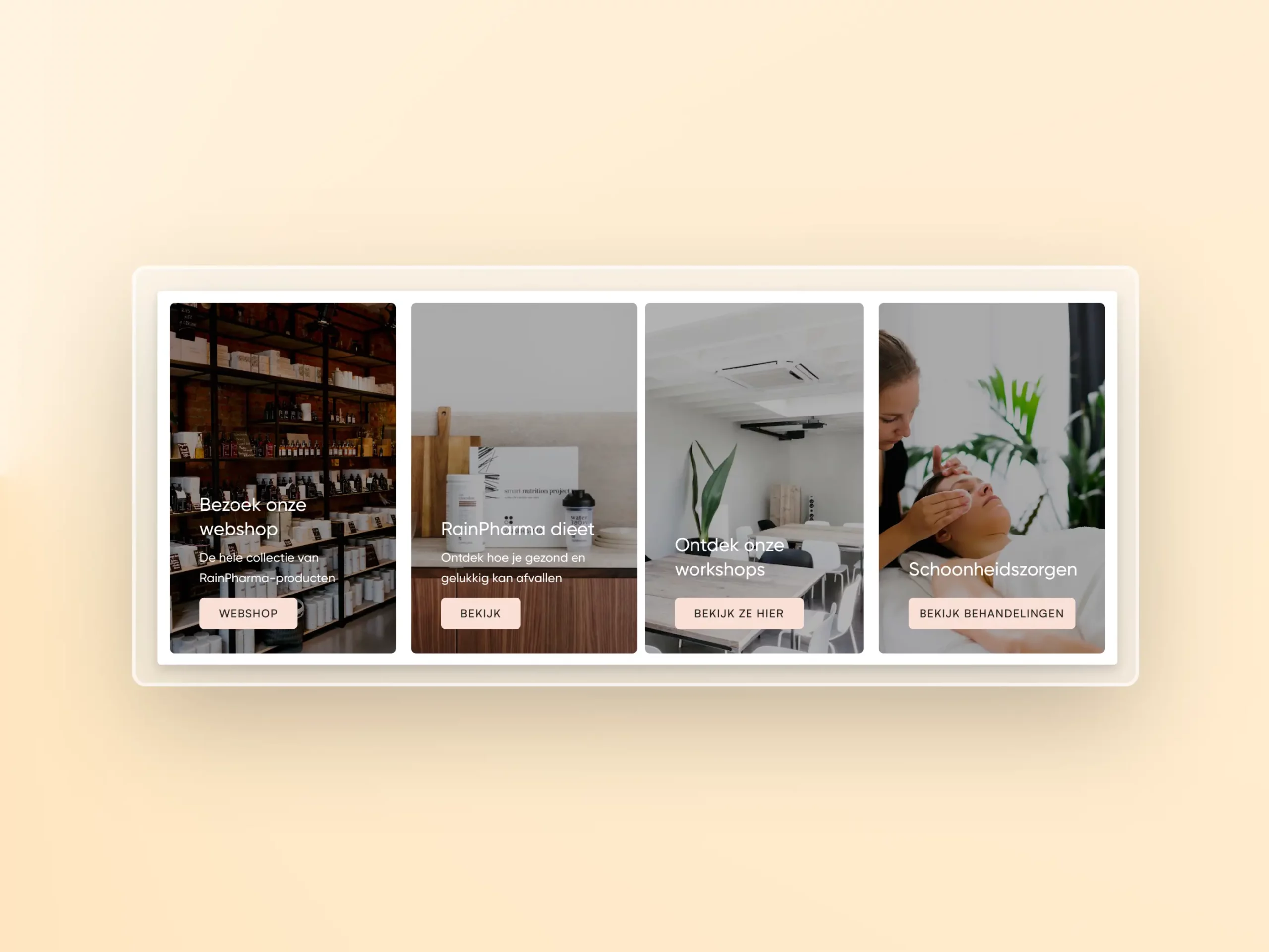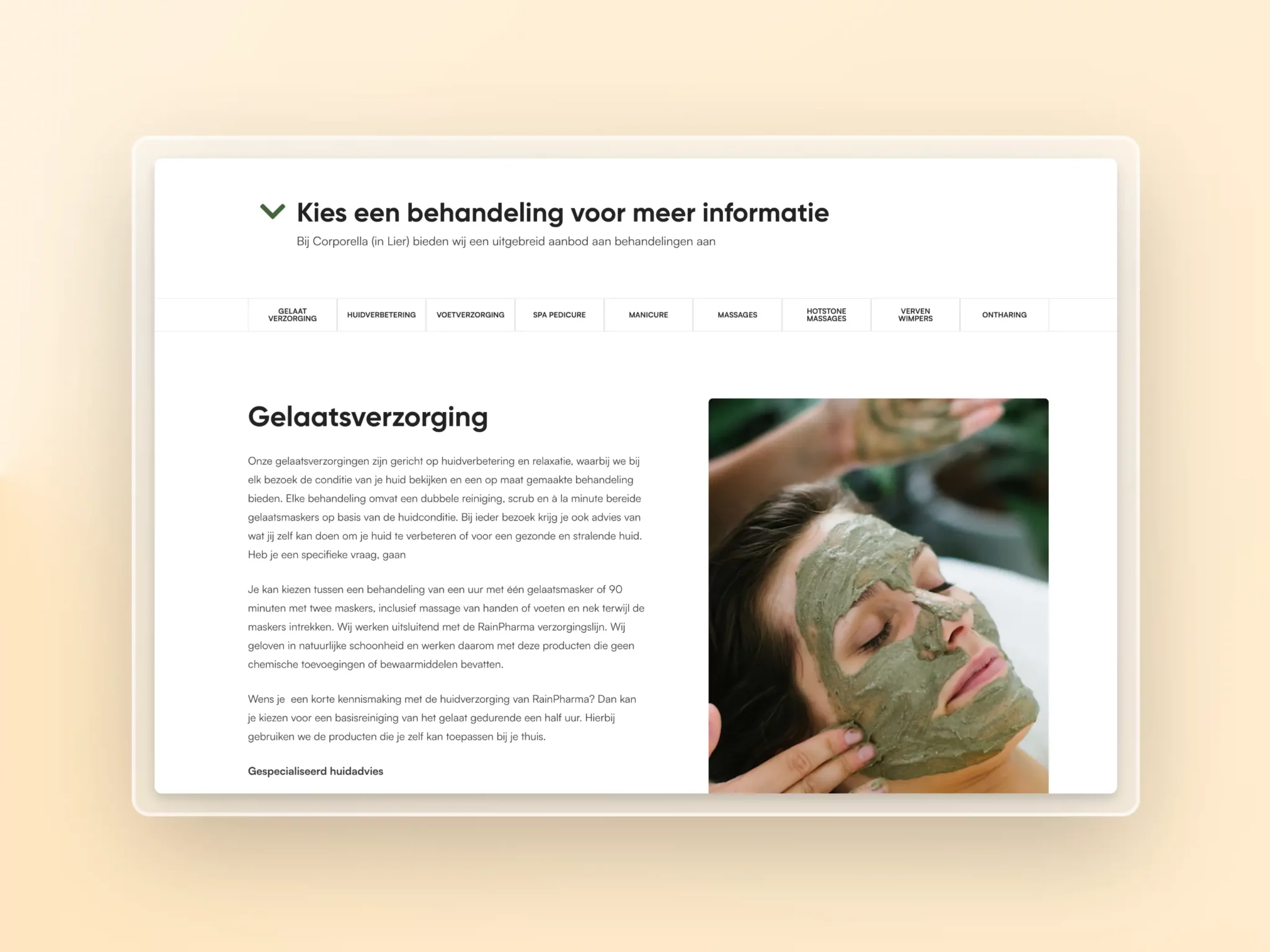Corporella is meer dan een officiële verdeler van RainPharma. Ze bieden ook dieetbegeleiding, workshops en schoonheidszorgen aan. Dit maken we meteen duidelijk op de homepagina.