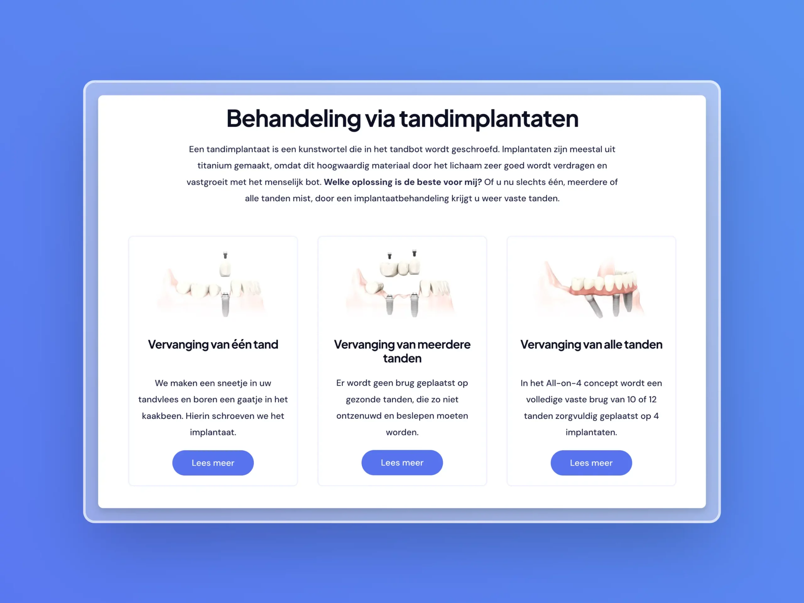 Dokter Frank Vanhove heeft meer dan 20 jaar ervaring als mond-, kaak- en aangezichtschirurg en legt zich uitsluitend toe op implantologie. Hij kwam aankloppen bij Kreatix na een negatieve ervaring bij een vorig bureau. We ontwikkelden een duidelijke informatie-website voor zijn praktijk en zorgen voor leads via informatieve campagnes.