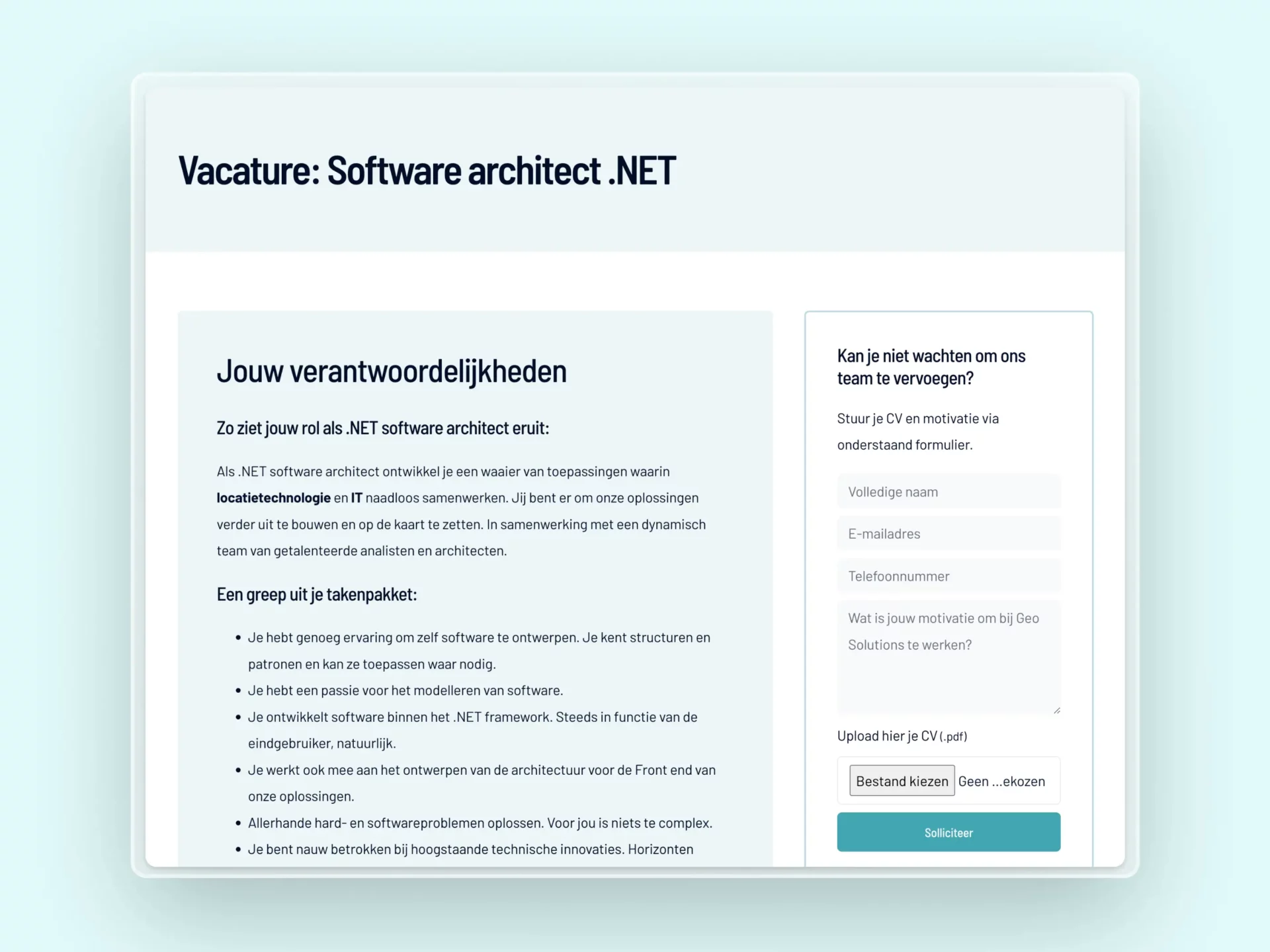 Als Great Place To Work is het belangrijk om een performant vacature-systeem te hebben. We geven alle info netjes weer en geïnteresseerden kunnen meteen via de website solliciteren.