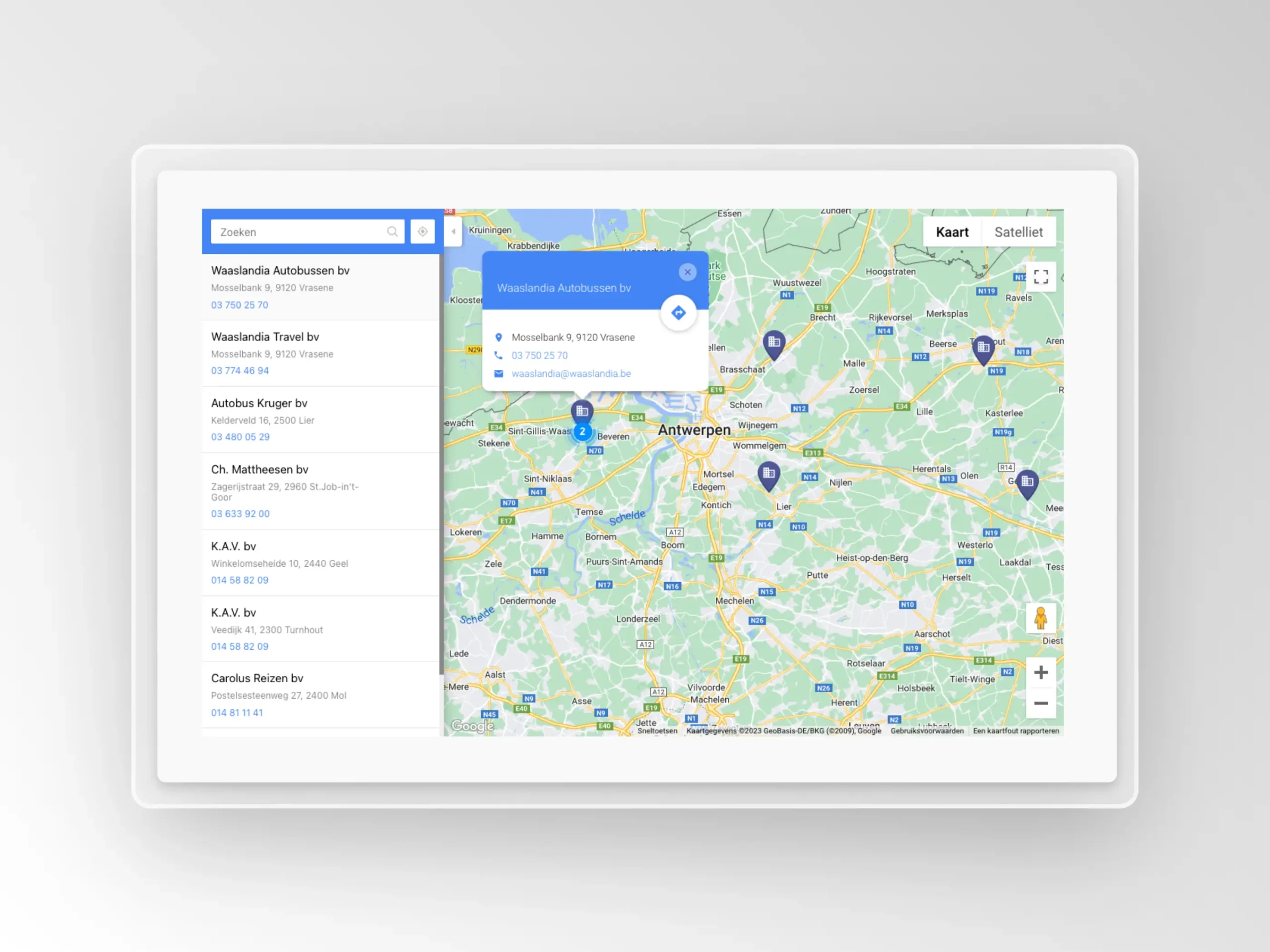 De website van Waaslandia bevat een interactieve kaart waarop hun verschillende vestigingen zichtbaar zijn. Bezoekers kunnen de specifieke locaties bekijken en de bijbehorende contactinformatie raadplegen.