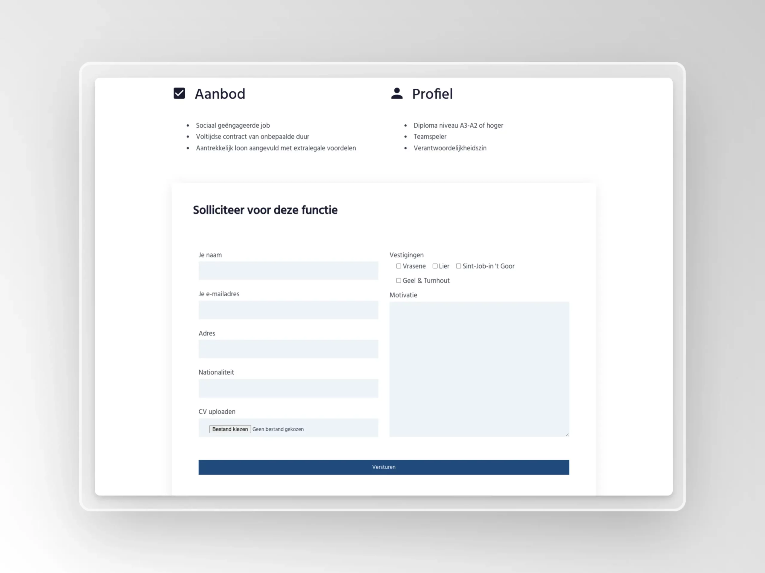 Op de Waaslandia website is een gebruiksvriendelijk vacaturesysteem geïntegreerd. Potentiële sollicitanten kunnen de beschikbare functies van buschauffeur of technicus bekijken en direct solliciteren via een eenvoudig in te vullen formulier.