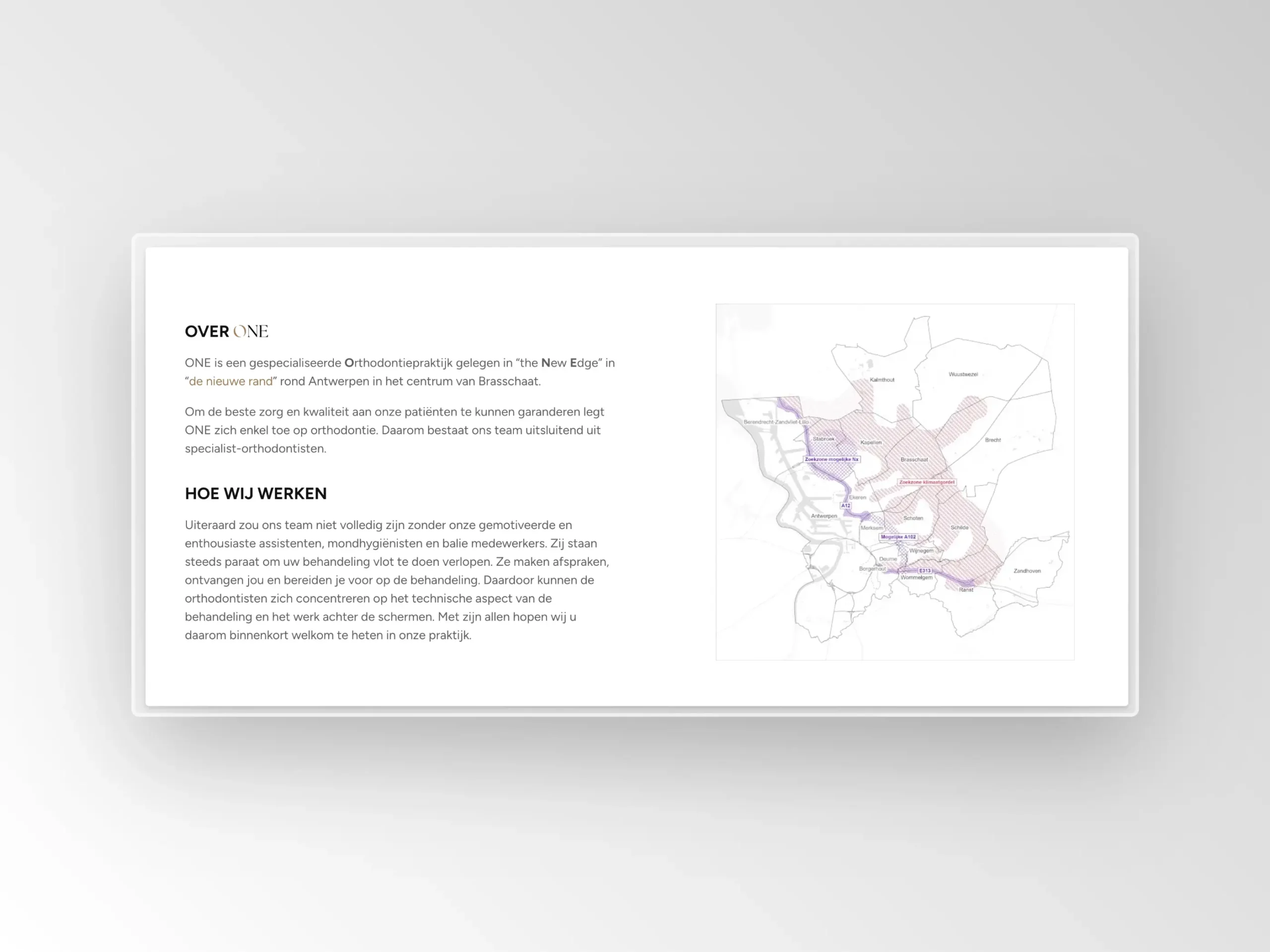 ONE Orthodontie is een nieuwe praktijk in regio Brasschaat. Michiel contacteerde ons omdat hij een professionele partij zocht voor de opbouw van de website. Ze willen namelijk een kwalitatieve uitstraling hebben, iets wat wij perfect voor hun kunnen regelen. Ook omdat tegenwoordig elke praktijk met lange wachtlijsten zit, bouwden wij een aantal handige automatisaties in de website om dit te stroomlijnen.
