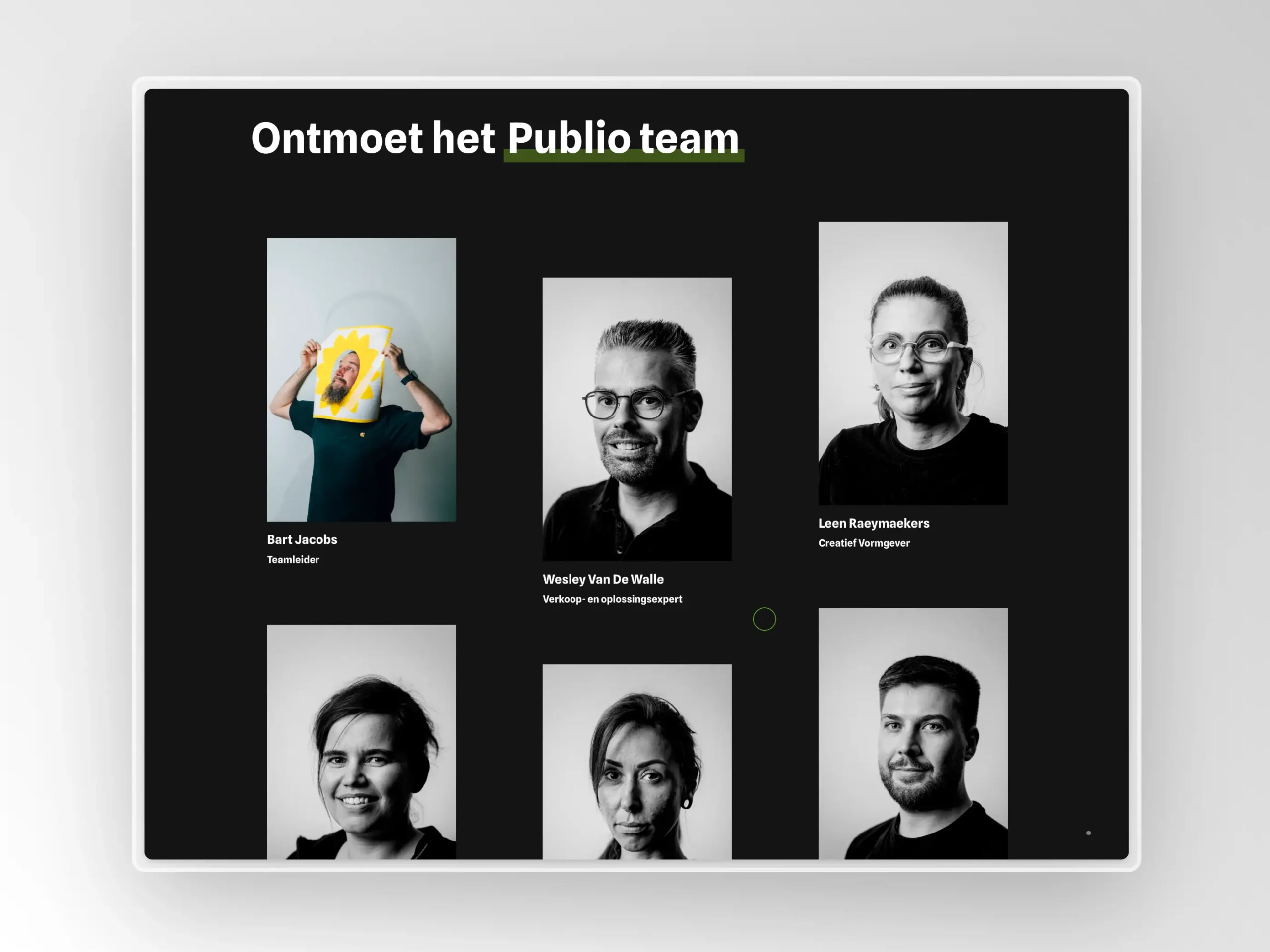 Publio wou opvallen tussen alle ‘normale’ sites van concurrenten. Door een unieke homepage op te bouwen, heb je meteen een andere ‘binnenkomer’. Als je hovered over de diensten, krijg je ook een foto te zien. Dit hebben we custom gecoded voor Publio.