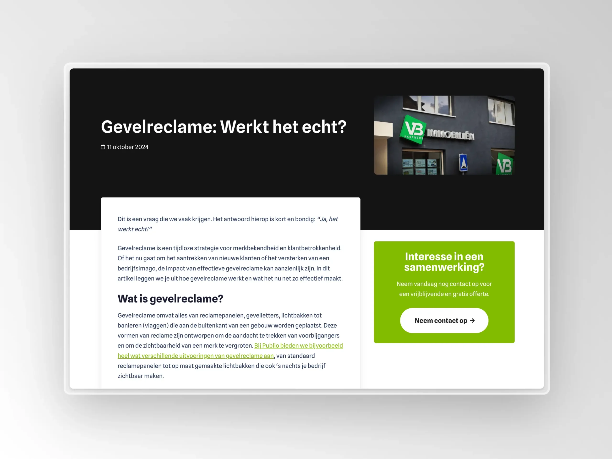 Omdat Publio ook voor ons online marketing-pakket gekozen heeft, schrijven wij maandelijks interessante artikels voor hun website. Zo blijft die altijd up-to-date en bekomen ze meer zichtbaarheid in de zoekmachines.