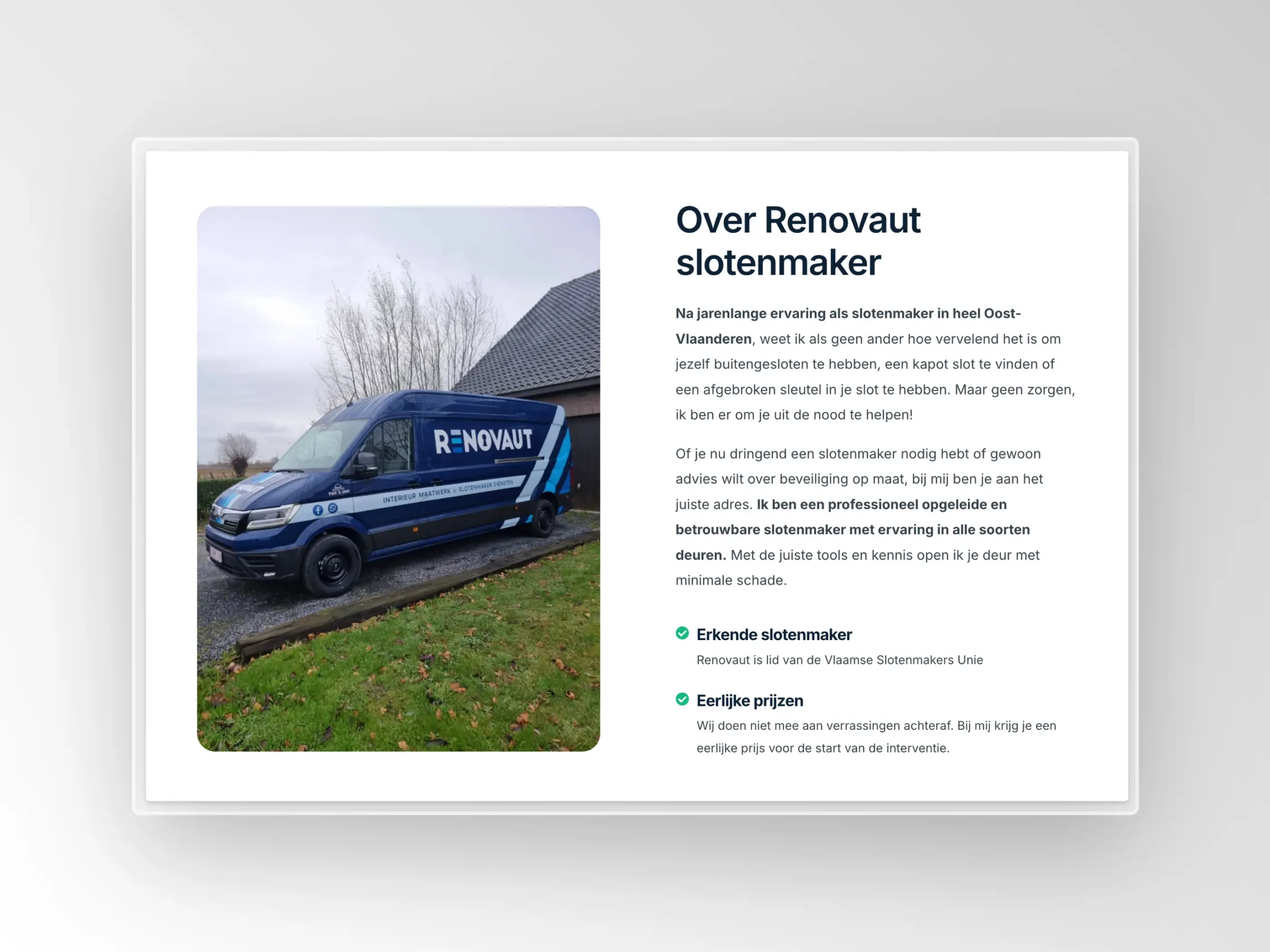 Renovaut is een slotenmaker in de regio van Evergem. Emrah, de zaakvoerder, nam contact met ons op om zijn website te migreren van SiteManager naar een omgeving die performanter is qua vindbaarheid in Google (SEO). Ons team ging de uitdaging aan en leverde een converterende website op die het aantal aanvragen zal verhogen. Door een slimme integratie van local SEO, kwaliteitslabels en reviews steken we de concurrentie voorbij!