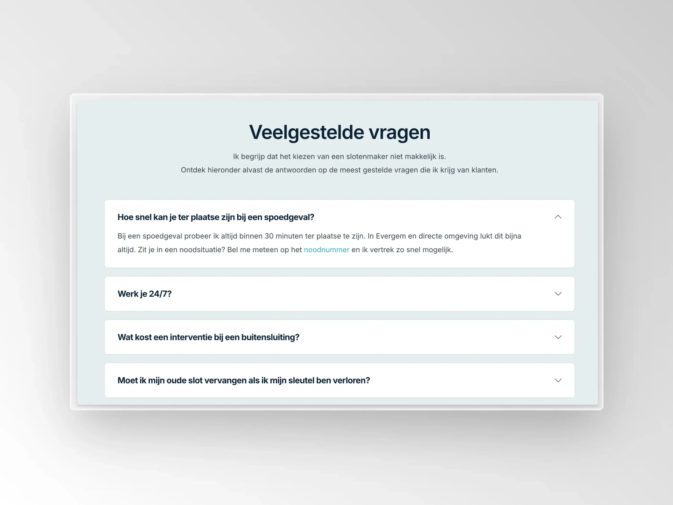 Om de vindbaarheid in Google te verbeteren, hebben we een heleboel ’trucjes’ toegepast in dit project. Hieronder kan je een uiteenzetting vinden van alle technieken die we gebruiken. Eerst en vooral schrijven we op de dienstenpagina’s de verschillende zoekwoorden die klanten zouden intikken als ze dat specifiek probleem hebben!