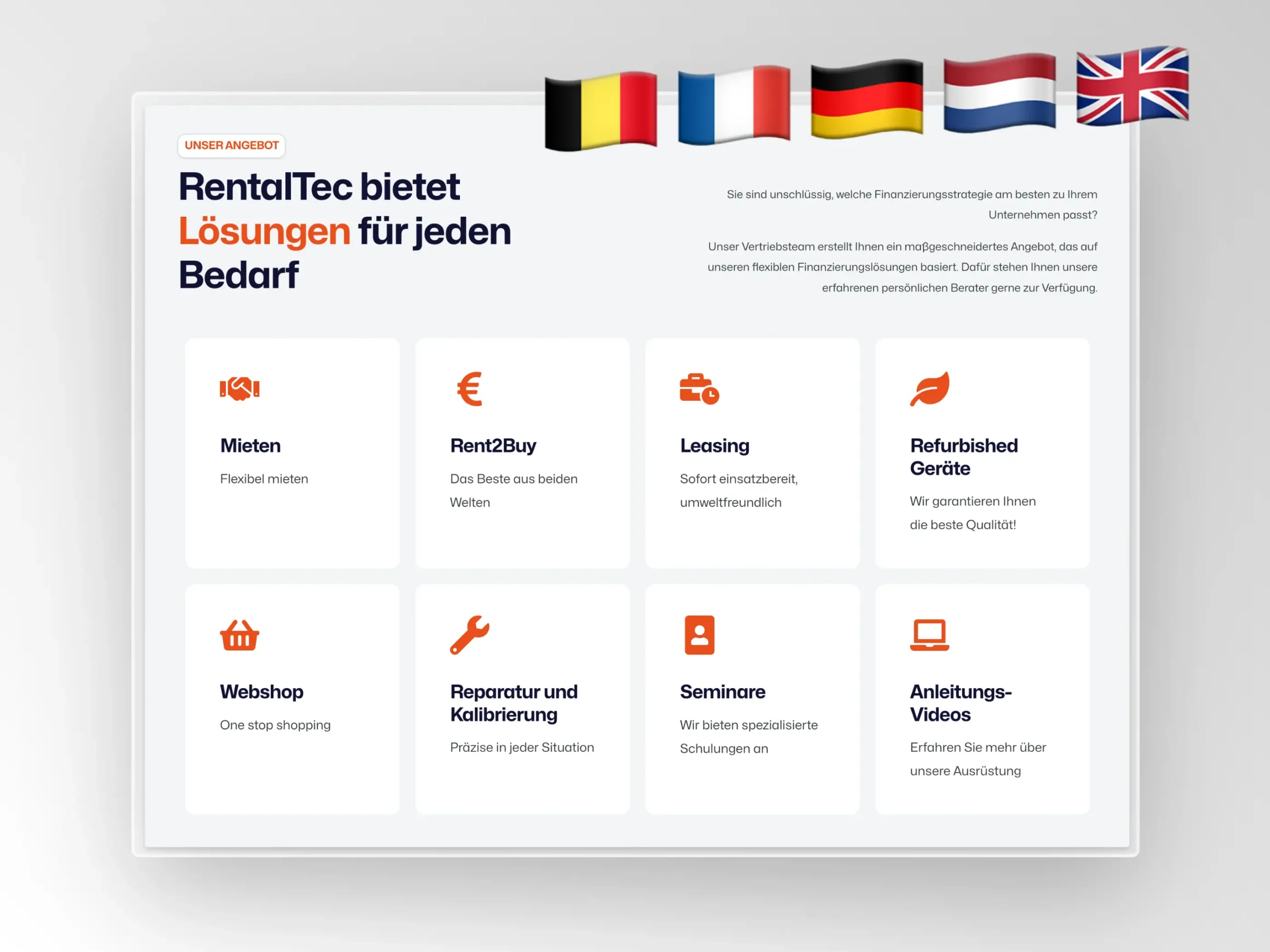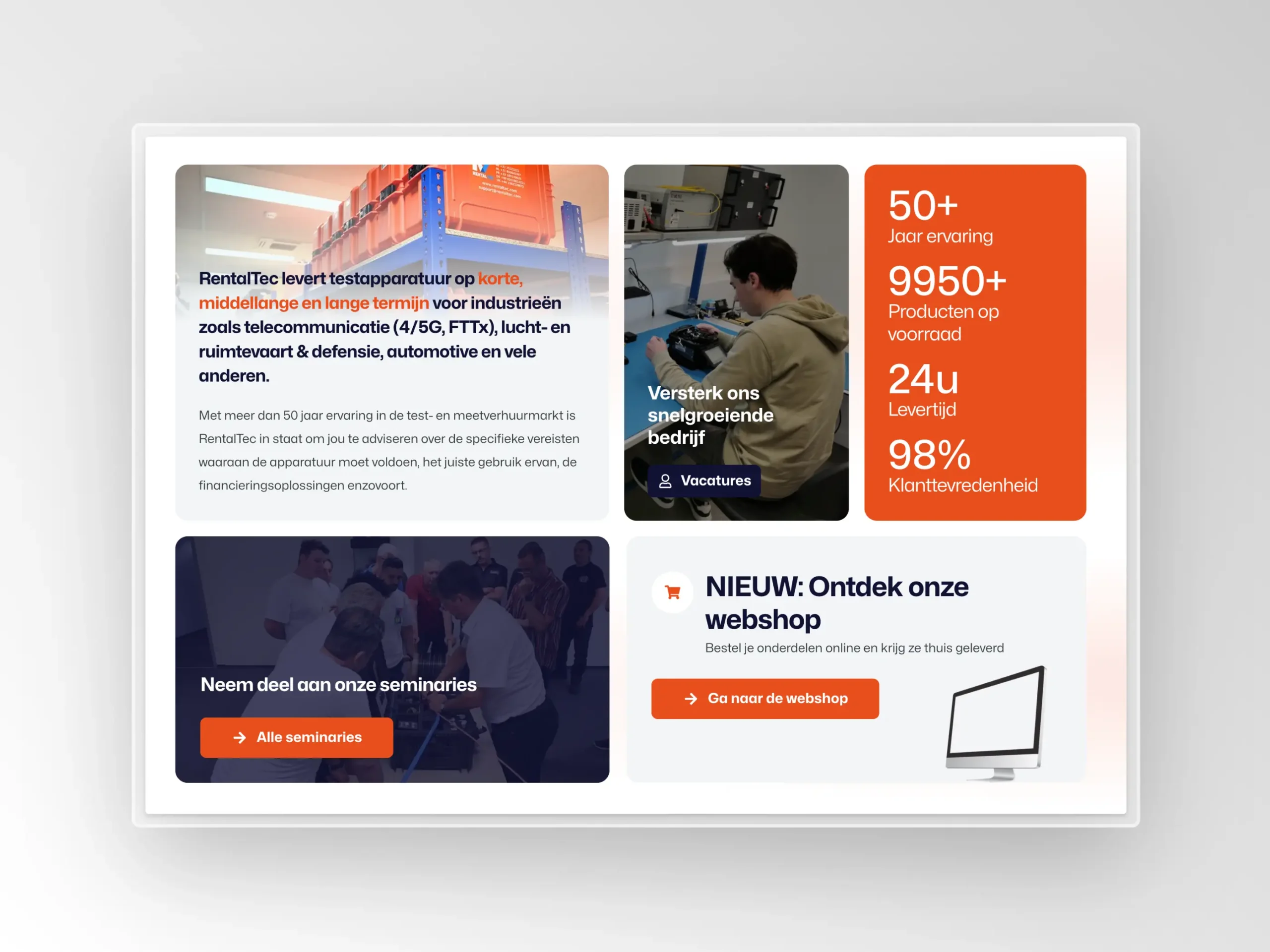 RentalTec heeft niet alleen veel producten, ze hebben ook veel diensten. Daarom bundelden we deze meteen op de homepagina, zodat bezoekers sneller de weg vinden doorheen de website.