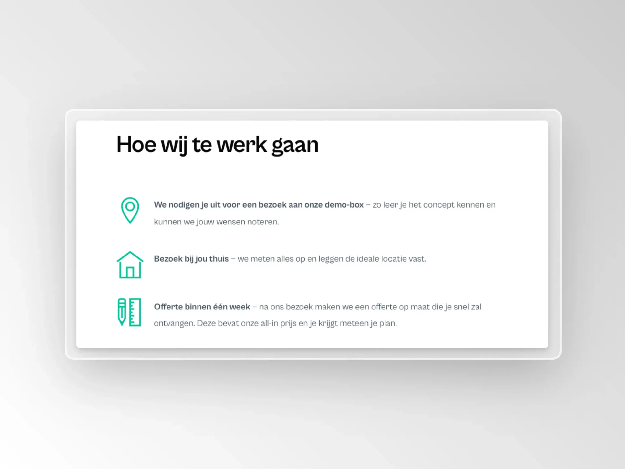 Een bouwproject heeft altijd veel stappen & vragen. Daarom brachten wij deze meteen in kaart op de website. Zo weet de potentiële klant hoe het verder zal verlopen.